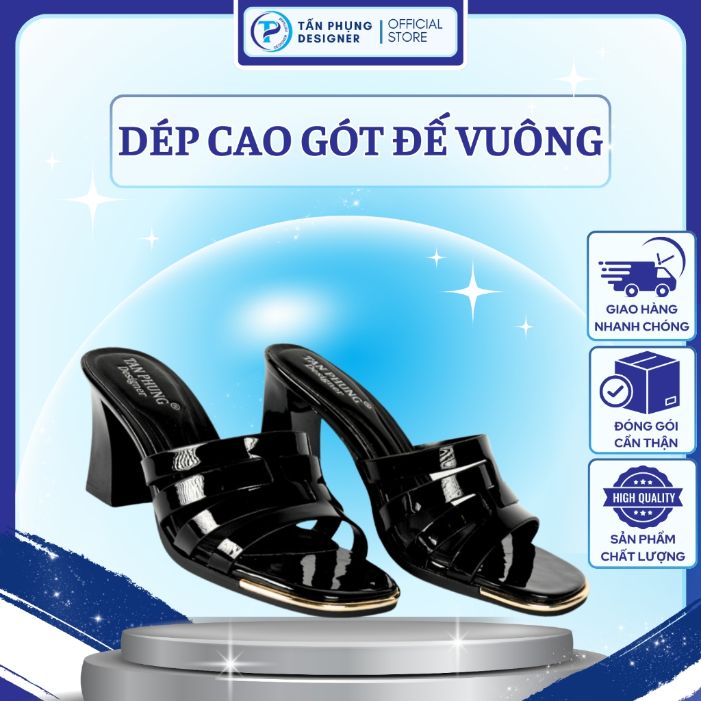– Thương hiệu: TẤN PHỤNG Designer. – Sản xuất: Việt Nam. – Kiểu dáng: Dép Cao Gót. – Màu sắc: Đen, trắng, kem. – Độ cao gót: 7 cm. – Đế: TR Chống trơn, trượt. – Size: 35 - 39. – Chất liệu: Da tổng hợp cao cấp nhập khẩu Microfyber. – Trọn bộ sản phẩm gồm: 01 đôi giày nữ thời trang cao cấp TẤN PHỤNG Designer + Thẻ bảo hành + Thư cảm ơn + Túi đựng giày chống ẩm, chống lão hóa + 01 hộp đựng sang trọng. – Bảo hành: 06 tháng (với lỗi do sản xuất).