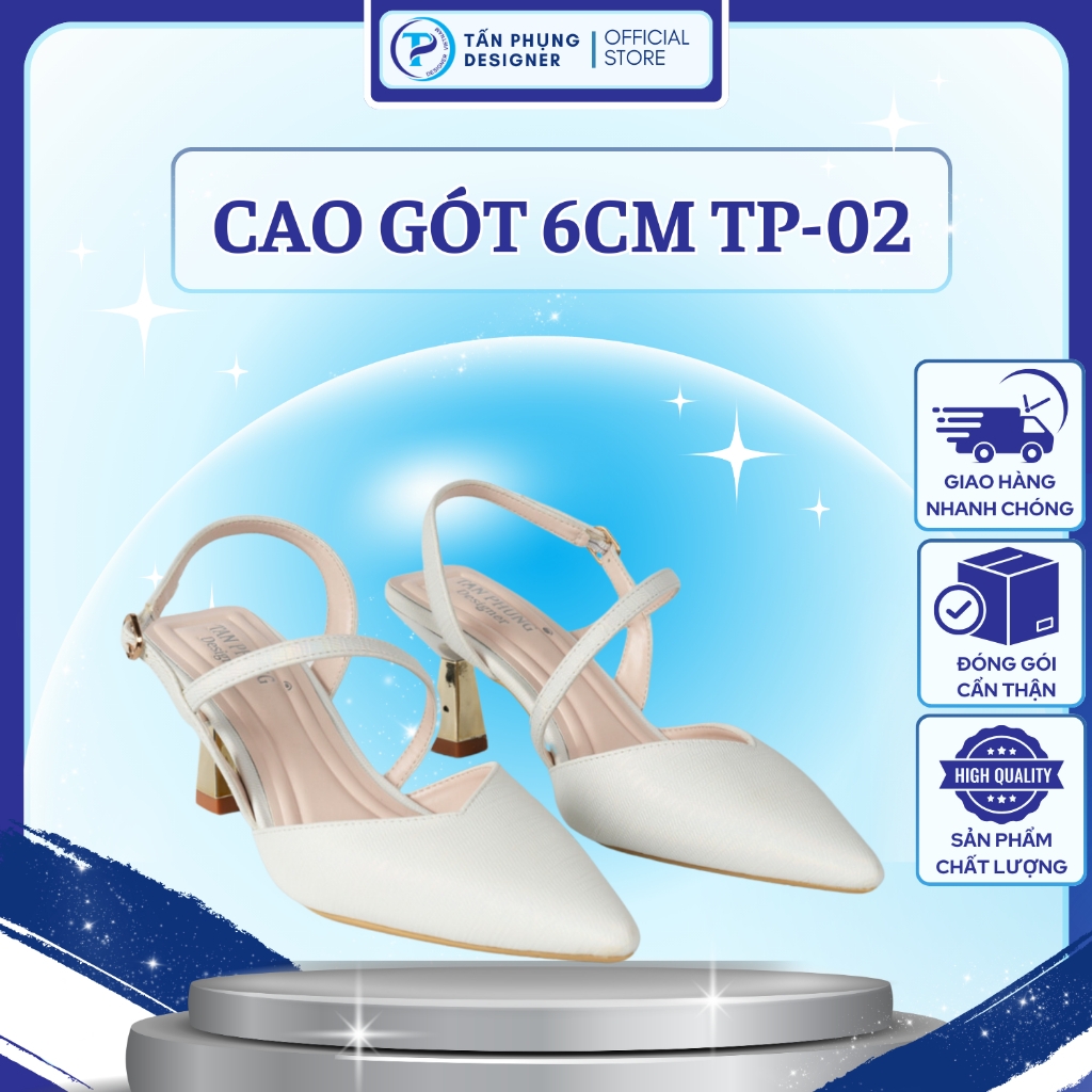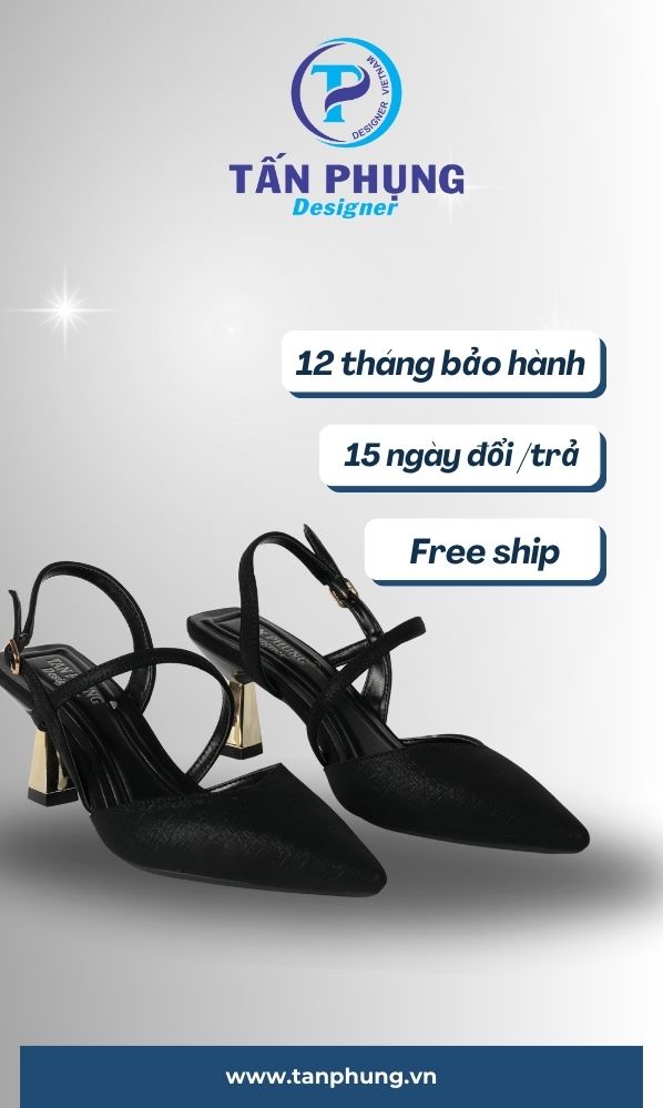 – Thương hiệu: TẤN PHỤNG Designer. – Sản xuất: Việt Nam. – Kiểu dáng: Giày cao gót. – Màu sắc: Đen, trắng, kem. – Độ cao gót: 6 cm. – Size: 35, 36, 37, 38, 39. – Chất liệu: Da tổng hợp cao cấp nhập khẩu Microfyber. – Trọn bộ sản phẩm gồm: 01 đôi giày nữ thời trang cao cấp TẤN PHỤNG Designer + Thẻ bảo hành + Thư cảm ơn + Túi đựng giày chống ẩm, chống lão hóa + 01 hộp đựng sang trọng. – Bảo hành: 06 tháng (với lỗi do sản xuất).