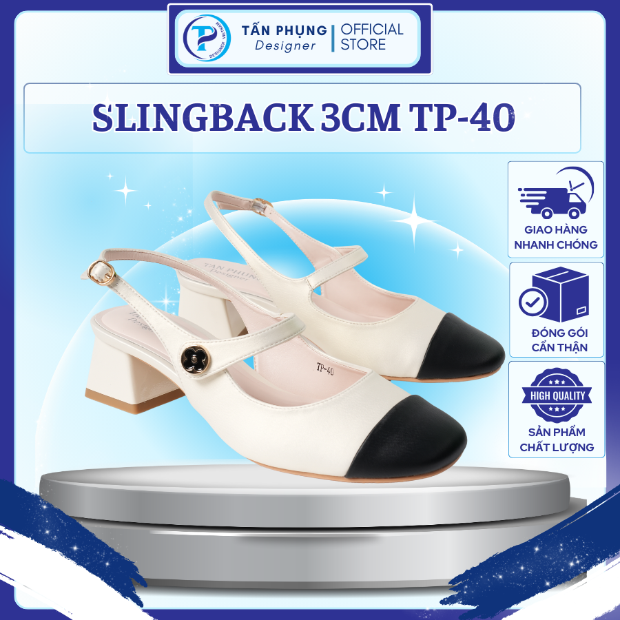 – Kiểu dáng: Slingback mũi tròn gót trụ.